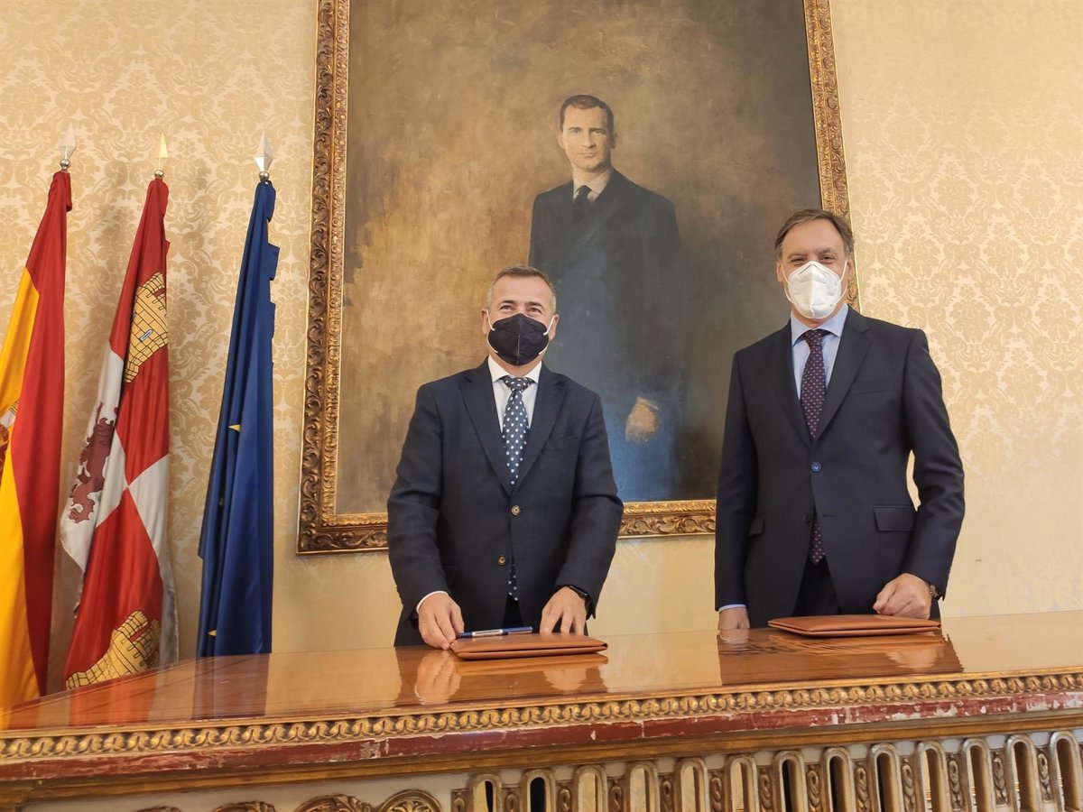 El presidente de la Fundación Caja Duero, José María de la Vega, y el alcalde de Salamanca, Carlos García Carbayo, tras firmar el acuerdo. - EUROPA PRESS