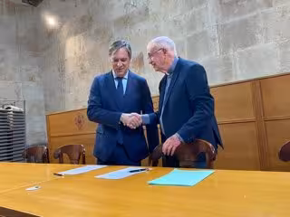 El alcalde de Salamanca, Carlos García Carbayo, y el deán de la Catedral, Antonio Matilla, han firmado un convenio de colaboración que mejorará y ampliará el recorrido de 'Ieronimus', lo que es "un proyecto muy ilusionante para todos", como ha asegurado el regidor salmantino.