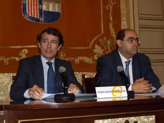El alcalde de Salamanca, Alfonso Fernández Mañueco, acompañado por el delegado del área de Hacienda en el Consistorio, Fernando Rodríguez, ha señalado que, a pesar de la bajada, será posible incrementar la inversión un 25 por ciento y mantener el gasto social y en servicios gracias a la reducción del gasto corriente.