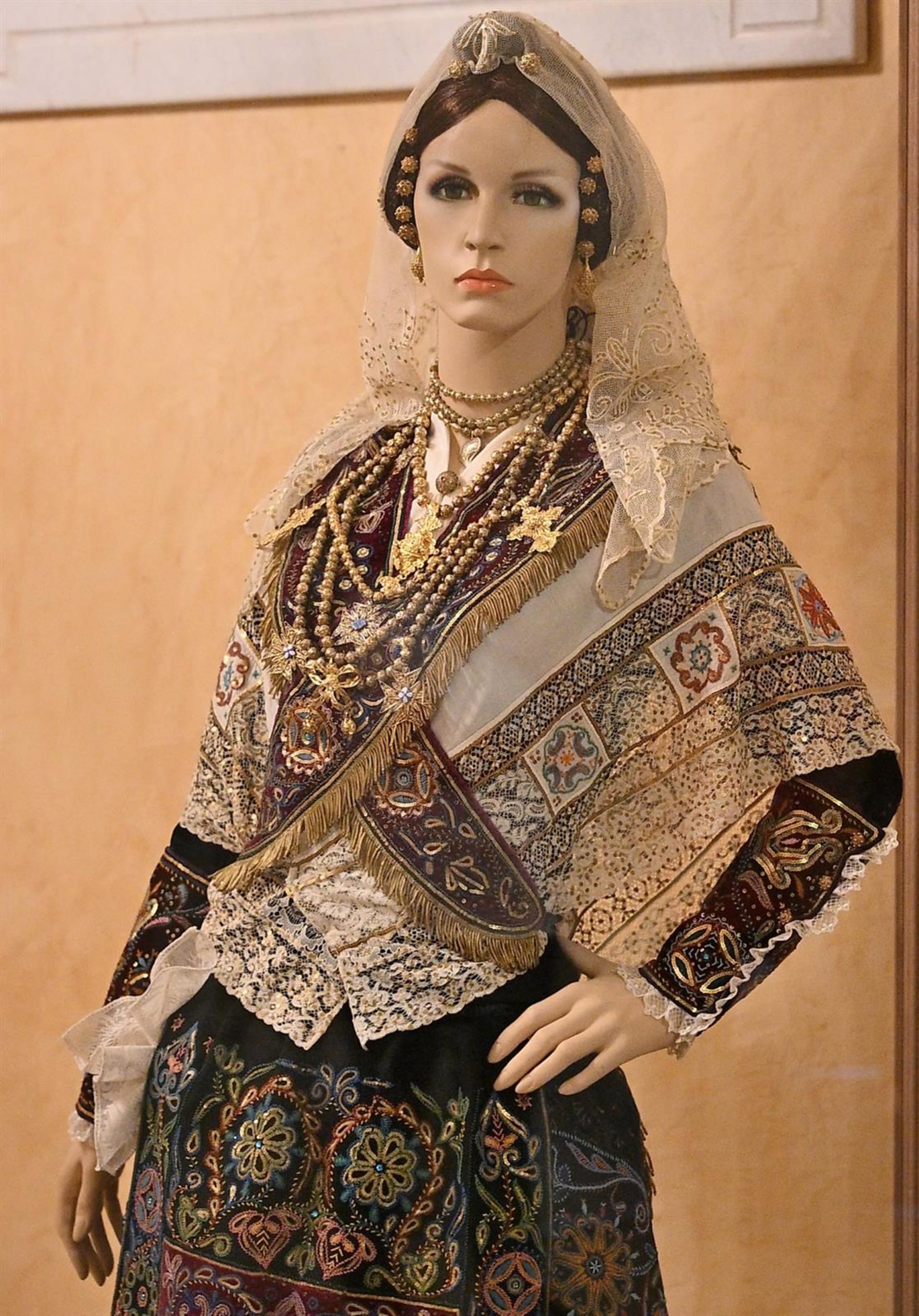 El traje tiene un gran valor por su antigüedad, por los materiales utilizados en él y por su original elaboración. Se realizó entre los años 1840 y 1860 y está realizado completamente en mostacillas de colores y lentejuela tradicional realizada con cadena a través de prensa.