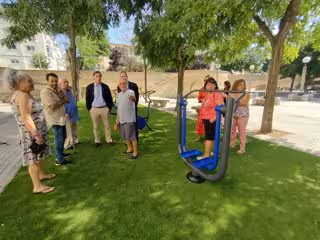 Sobre esta actuación, que ha visitado en compañía de los ediles de Fomento y de Participación Social, Fernando Carabias y Almudena Parres, respectivamente, y de representantes vecinales, el parterre se ha tapizado con césped sintético de acabado deportivo para convertirlo en una zona de ejercicios con bicicletas, elíptica, caminador y patines.