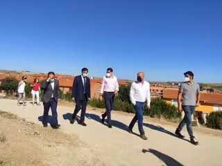 El alcalde de Salamanca, segundo por la izquierda, en su visita al parque de Chamberí. - EUROPA PRESS
