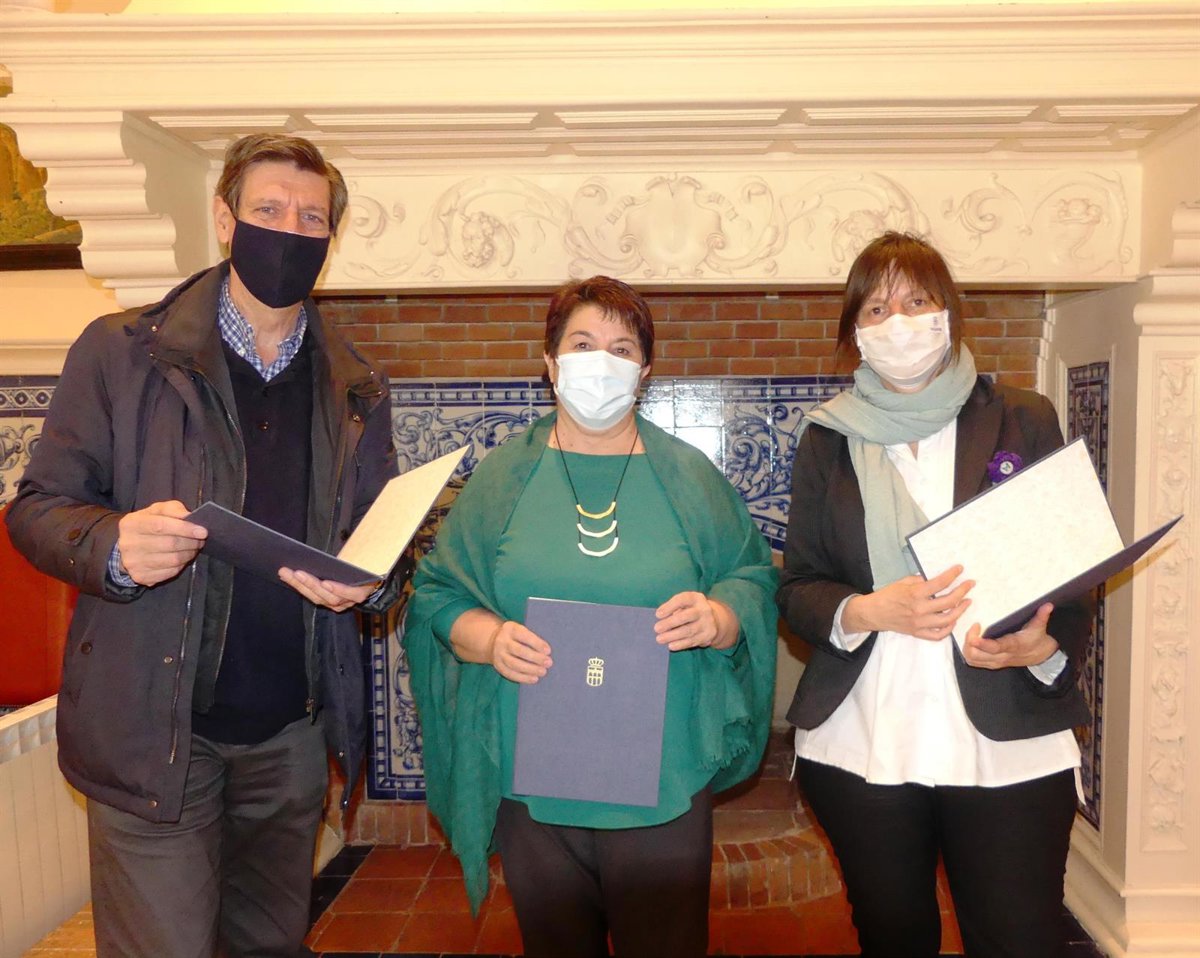 La alcaldesa de Segovia, Clara Luquero, y el director de la Real Academia, Rafael Cantalejo, han firmado el convenio por el que el Consistorio concede una subvención por importe de 18.420 euros para apoyar sus actividades culturales previstas para el año 2021.