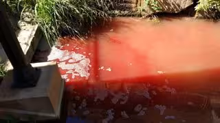 Al lugar acudieron tanto trabajadores de la Empresa Mixta como de la Policía Local para comprobar el funcionamiento de la red y los motivos de este vertido de agua con sangre procedente del matadero.