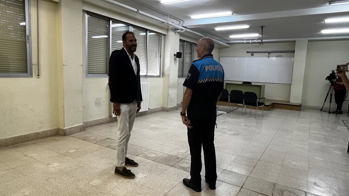 El concejal Ignacio Peña con un policía local en la sede provisional. - EUROPA PRESS