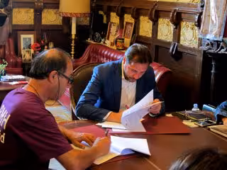 El convenio se ha firmado en el 80 aniversario de los disparos de los sublevados, cuando "el alcalde de la ciudad fue juzgado y condenado a muerte por no compartir las ideas de quienes querían acceder al poder por la fuerza" ha recordado Del Olmo.