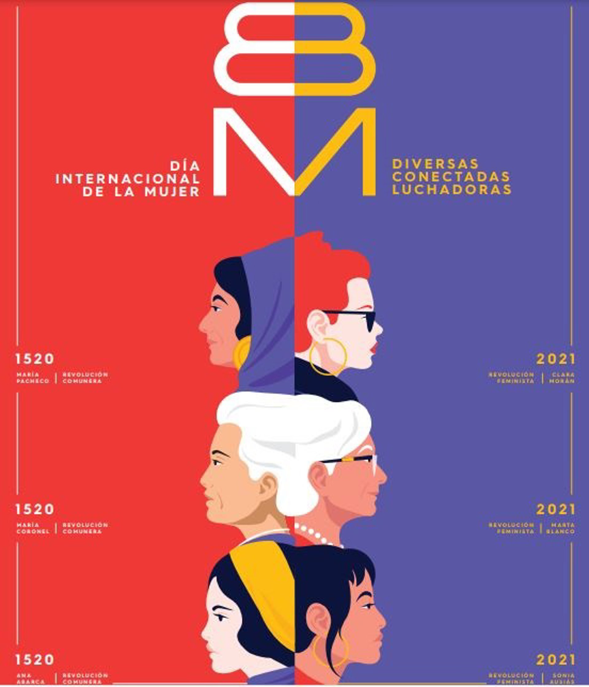 La campaña de este año lleva el lema 'Diversas, conectadas, luchadoras. Una mirada atrás para recordar a las olvidadas, una mirada adelante para construir una igualdad real'. En esta frase se recoge una mirada retrospectiva a la celebración en 2021 de los 500 años de la conclusión de la Guerra de las Comunidades de Castilla, y realiza un homenaje a las mujeres que jugaron un importante papel en ese acontecimiento histórico, que se remonta a 1521.