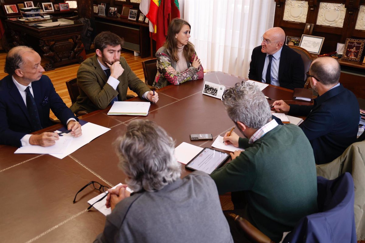 A la reunión han asistido el alcalde, concejales 'populares' como los de Hacienda y Personal, Francisco Blanco; y Personas Mayores y Servicios Sociales, Rodrigo Nieto; la presidenta de CEOE Valladolid, Ángela de Miguel; y Raúl García Agudo por parte de CC.OO, y Raúl Santa Eufemia en representación de UGT.