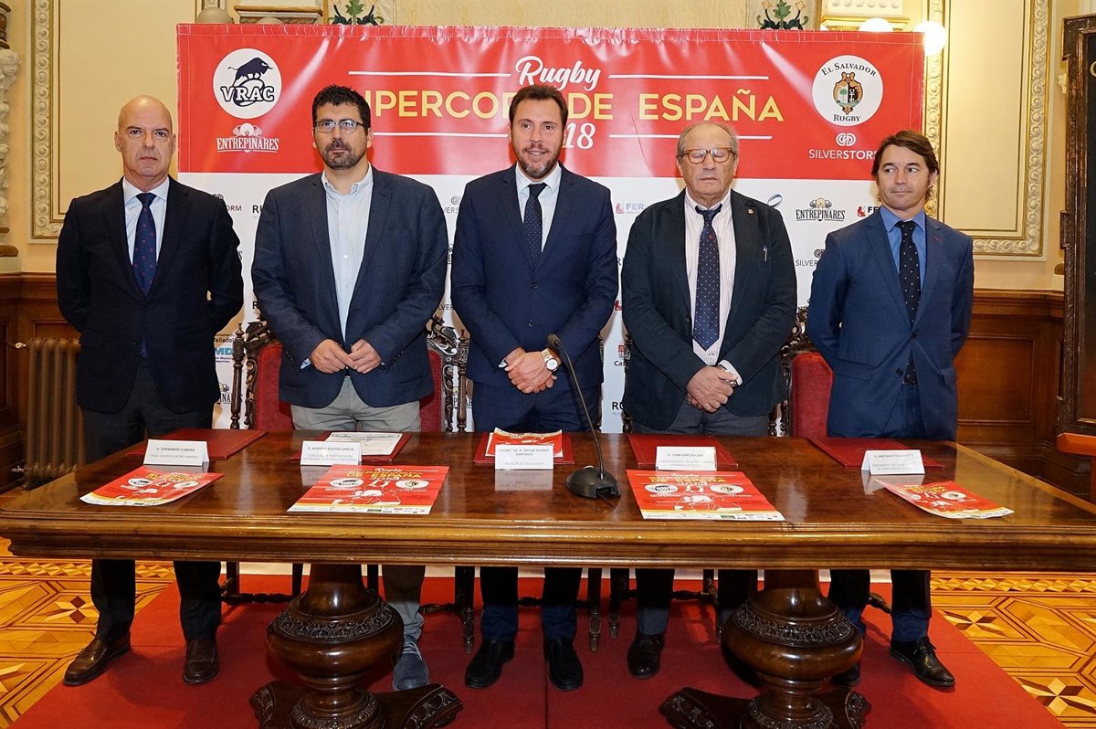 El alcalde, Oscar Puente, y el concejal de participación Ciudadana, Juventud y Deportes, Alberto Bustos, han presentado este jueves el encuentro, en el que se enfrentarán los dos equipos de rugby de la ciudad, VRAC Quesos Entrepinares y Silverstorm El Salvador.