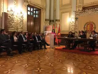 El Ayuntamiento de Valladolid ha celebrado este jueves el acto institucional del Día Internacional de la Mujer, que se ha iniciado con la versión del tema de la banda británica Cold Play 'Fix you' (Curarte) a cargo del grupo vocal 'Valle de aguas' y que ha puesto banda sonora al compromiso que han manifestado tanto el alcalde Óscar Puente como la coordinadora de UGT Renault-España, Laura del Ser Prieto, que ha sido la lectora del manifiesto, de "no dar ni un paso atrás en los derechos de la mujer" y trabajar "en favor de la igualdad" para "ser más libres".