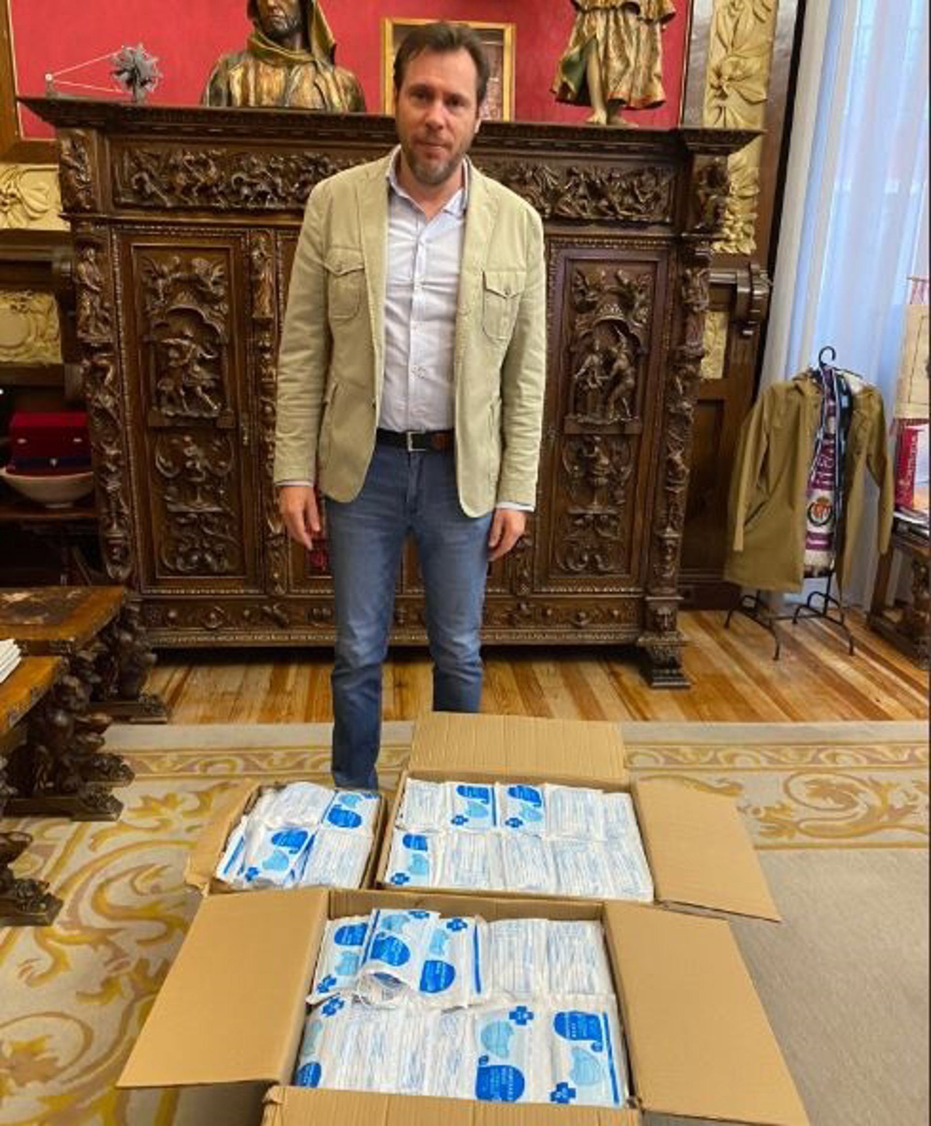 El alcalde de Valladolid, Óscar Puente, ha informado de que este lunes se han recibido en el Ayuntamiento de la ciudad 5.000 mascarillas donadas por la comunidad china en España que se destinarán para su uso por parte del personal municipal.