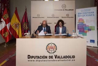 El presidente de la Diputación de Valladolid, Jesús Julio Carnero, y la presidenta de la Asociación Proyecto Mediación, Belén Martínez de Salinas, han firmado este lunes el convenio de colaboración entre ambas instituciones que permitirá desarrollar la primera fase del Programa de Mediación Comunitaria en la provincia.