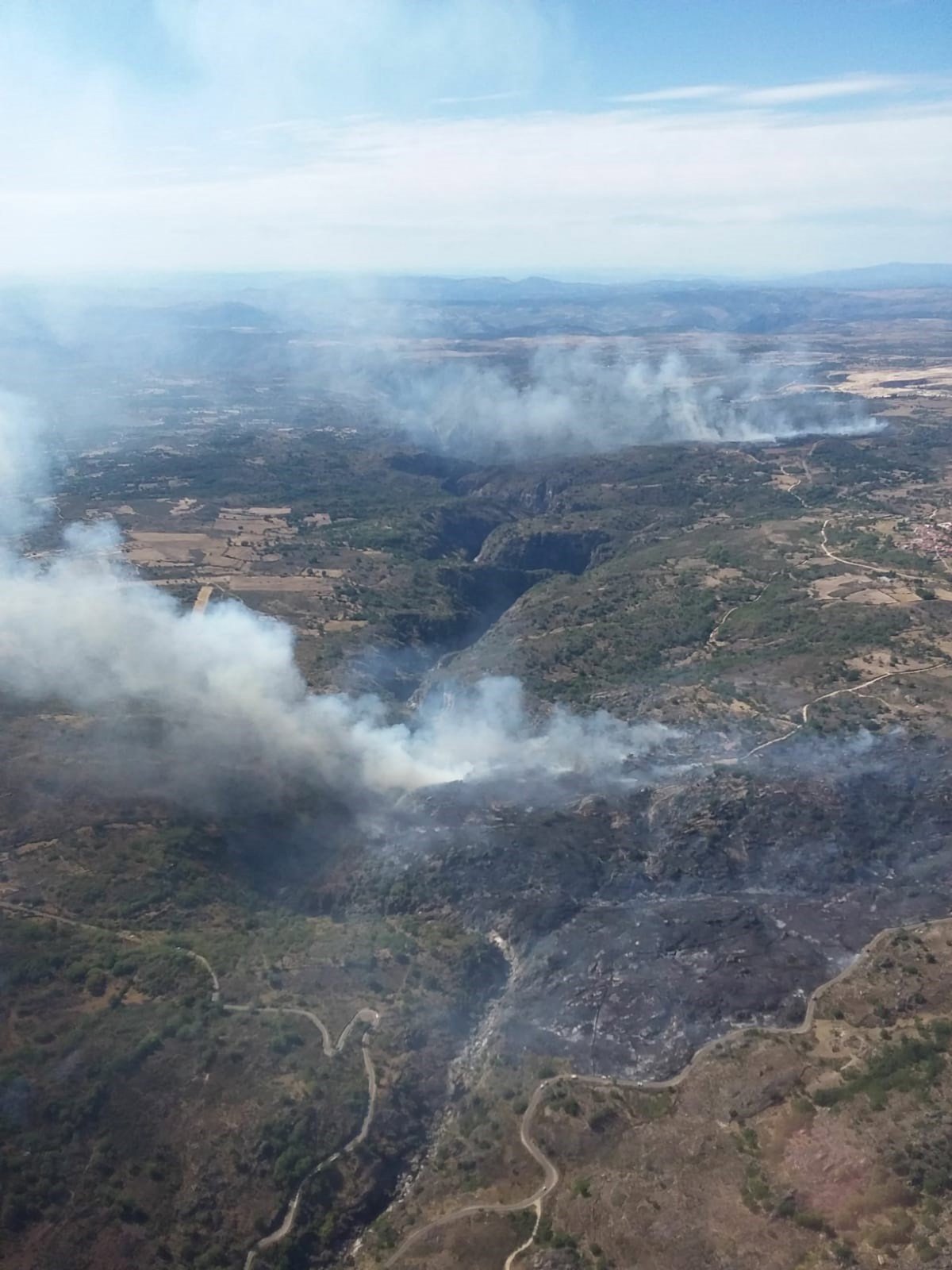 En concreto, se trabaja en la extinción en dos incendios declarados en la misma zona y separados únicamente por tres kilómetros.