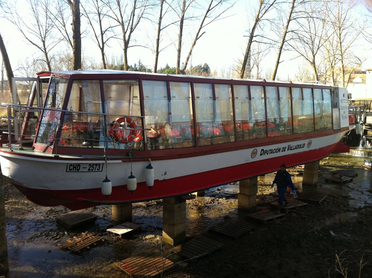 El barco turístico 'Antonio de Ulloa' promovido por la Diputación de Valladolid en el Canal de Castilla en la Tierra de Campos vallisoletana, reanuda su actividad este miércoles tras un mes de parada para revisión anual y puesta a punto en el dique seco ubicado en la dársena del Canal de Castilla en Medina de Rioseco.