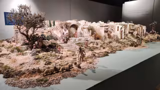 Además, estas escenas se mezclan con otras que representan la vida diaria en el campo y la representación de los oficios típicos de la época. Incluso se ha elegido el 'oecus' o salón principal de la mansión como el escenario del Portal de Belén con la representación del Misterio de la Natividad junto a la Adoración de los Magos.