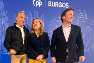 Bendodo (D) junto a la alcaldesa de Burgos y el presidente de la Diputación de Burgoss y secretario del PP de Burgos. - EUROPA PRESS