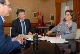 El presidente de la Diputación de Segovia, Francisco Vázquez, y la directora de Cáritas en la provincia, Rosario Díez, han firmado un convenio para poner en marcha una campaña de recogida de alimentos para el economato de la organización benéfica a través de los bibliobuses de la Institución Provincial.