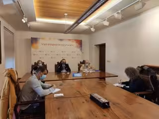 El rector de la USAL, Ricardo Rivero (c), informa de los asuntos tratados en el Consejo de Gobierno de la institución académica. - EUROPA PRESS