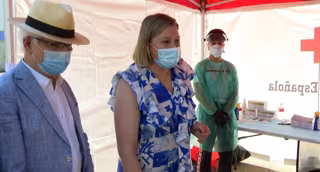 La consejera de Familia e Igualdad de Oportunidades, Isabel Blanco, durante una visita al puesto de Cruz Roja para la realización de test de antígenos a los jóvenes participantes en campamentos de la Junta. - EUROPA PRESS