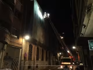 La intervención se ha prolongado por un espacio de casi dos horas, en la que la calle ha estado cortada al tráfico. Los bomberos, con una escala, han intervenido sobre la fachada de este edificio situado próximo al Teatro Calderón y que permanece vallado desde hace años.