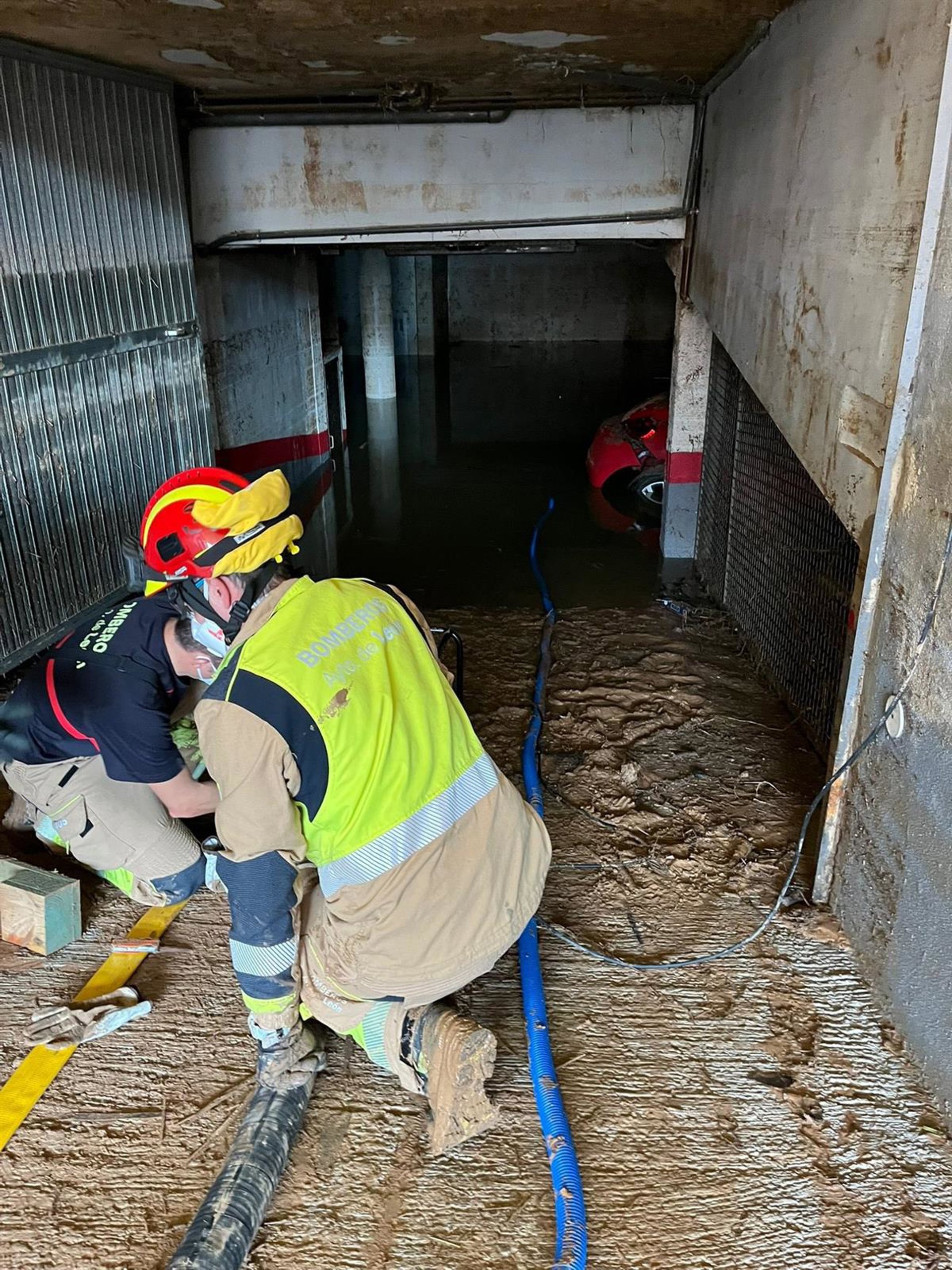 Por su parte los bomberos de la ciudad de León, también con seis efectivos y dos vehículos, desplazados desde este sábado a la zona cero, continúan las labores de dragado de garajes y retirada de vehículos. En las próximas horas se enviará un relevo para continuar los trabajos.