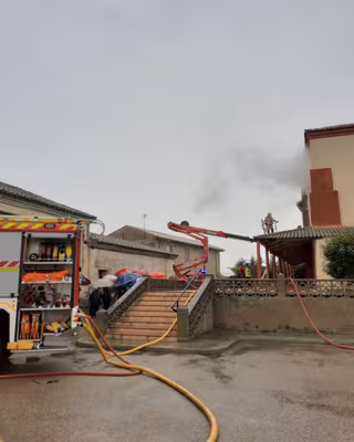 Bomberos del Sepeis de la Diputación de León intervienen en un incendio en la iglesia de San Andrés de Cimanes de la Vega. - DIPUTACIÓN DE LEÓN