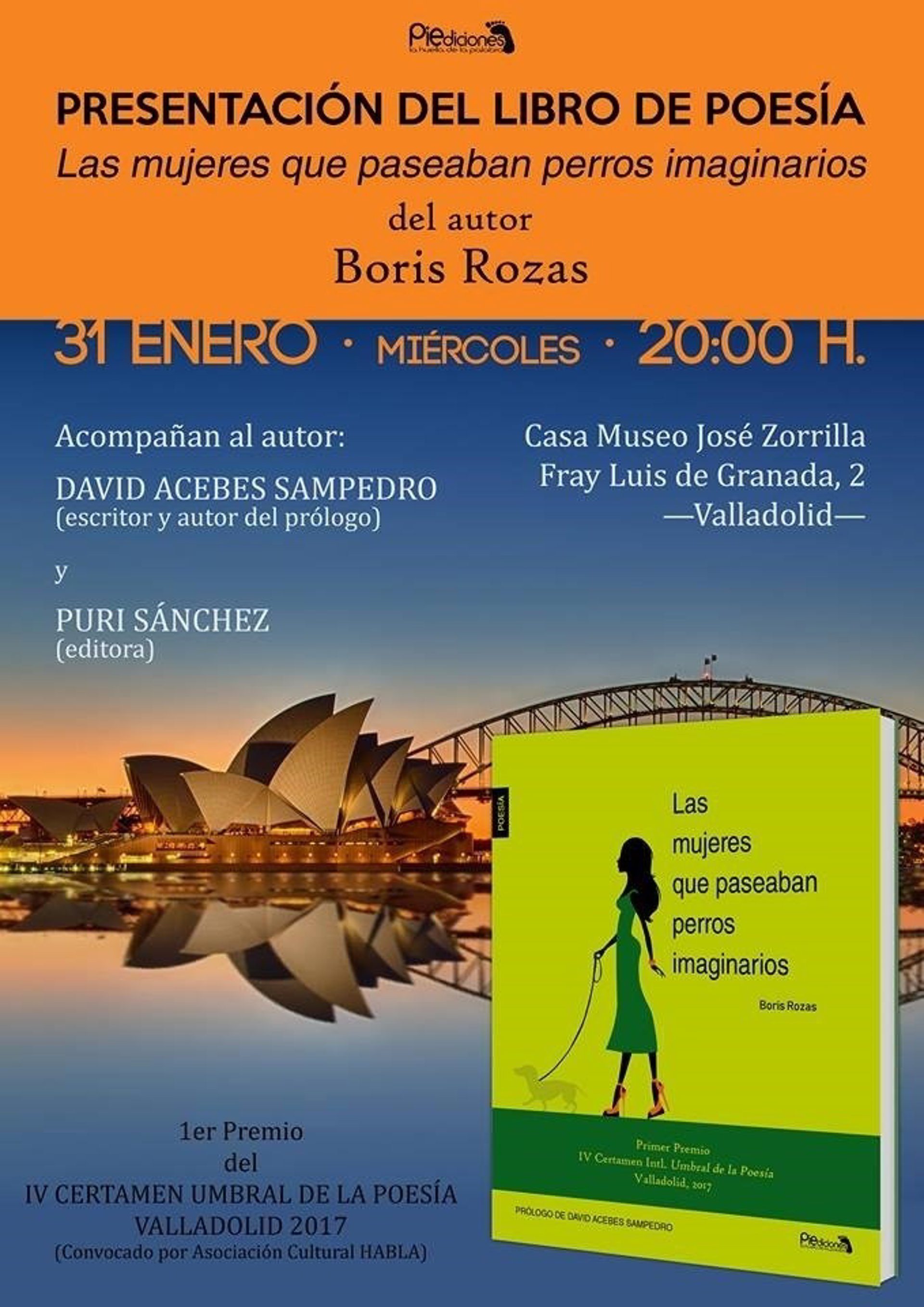 El poeta vallisoletano nacido en Buenos Aires (Argentina) Boris Rozas presentará este miércoles, 31 de enero, su nuevo poemario, 'Las mujeres que paseaban perros imaginarios', en un acto que se celebrará a partir de las 20.00 horas en la Casa Zorrilla de la capital.