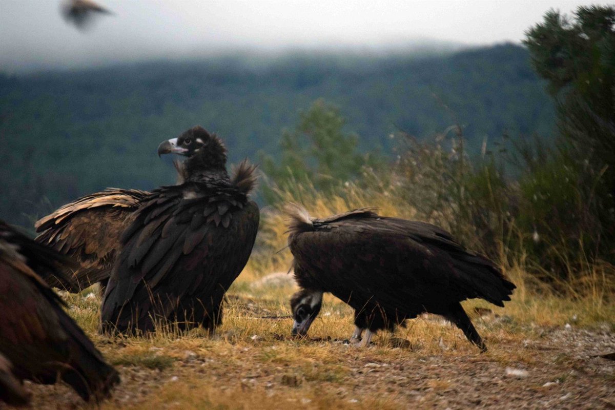 También hay buitres negros reintroducidos que proceden del centro de cría en cautividad de especies amenazadas que GREFA tiene en Majadahonda (Madrid), instalación que en 2020 ha conseguido el récord sin precedentes del nacimiento de seis pollos de esta especie en una misma temporada reproductora.