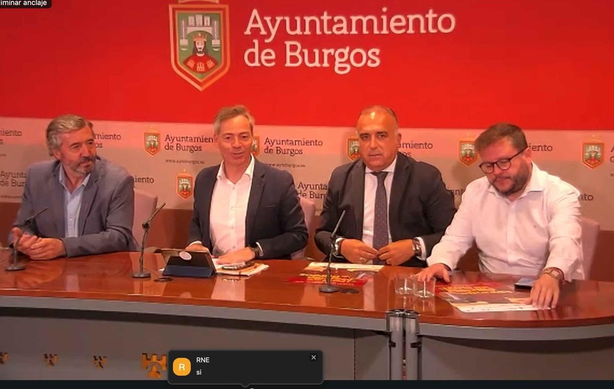 Tomás Fiscac, de Caja Rural; el concejal César Barriada; el gerente de IGP, Rafael González, y Rodrigo Ibeas, de las peñas de Burgos - AYUNTAMIENTO DE BURGOS