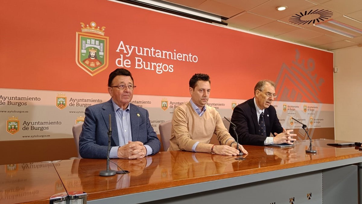 El alcalde (C) entre el presidente y el vicepresidente del Burgos C.F. - AYTO BURGOS.