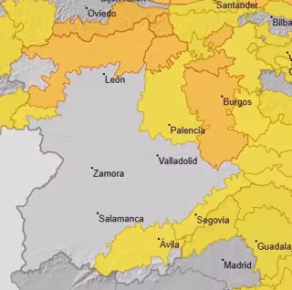 Burgos, León y Palencia estarán este sábado en aviso naranja (peligro importante) y Ávila, Segovia, Soria y Zamora en amarillo (peligro bajo) por nieve y vientos, según la información de la Agencia Estatal de Meteorología (Aemet) recogida por Europa Press.