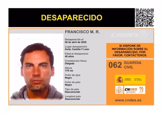 El Centro Nacional de Desaparecidos (Cndes) ha pedido la colaboración ciudadana para localizar a un hombre de 40 años, Francisco M.R, que fue visto por última vez en Ávila este martes, 8 de abril.