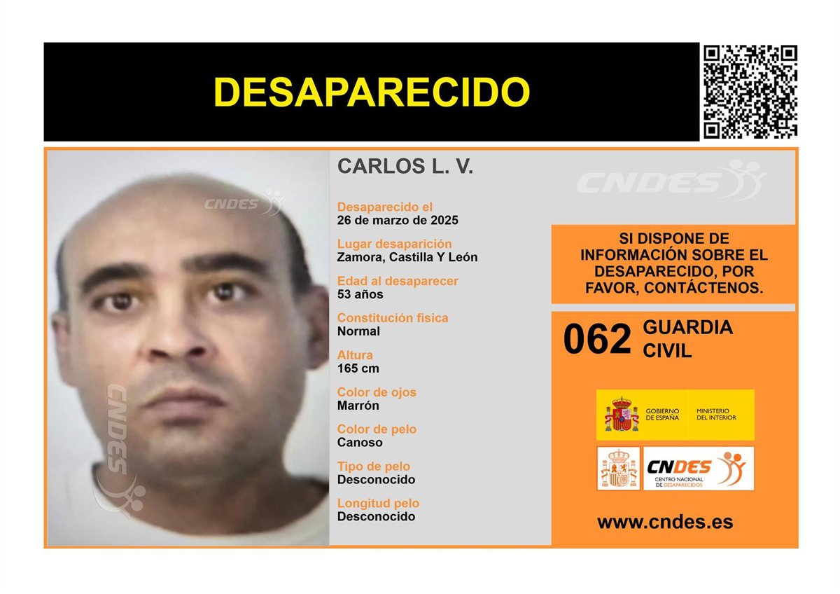 La Guardia Civil de Zamora ha desplegado un dispositivo de búsqueda para localizar a Carlos Javier López Vecilla, varón de 53 años desaparecido desde el jueves en la localidad zamorana de Arquilinos con su vehículo.