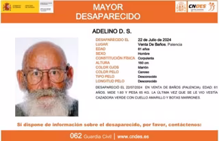 El Centro Nacional de Desaparecidos ha publicado este martes el aviso de desaparición de una varón mayor, de 81 años, a quien se vio por última vez este lunes, 22 de julio, en la localidad palentina de Venta de Baños.
