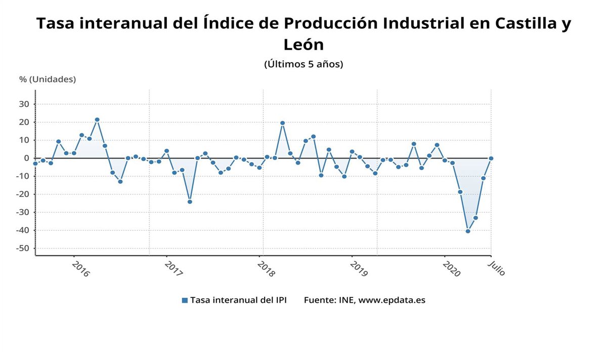 Gráfico de elaboración propia sobre la evolución del IPI en CyL en julio de 2020 - EPDATA