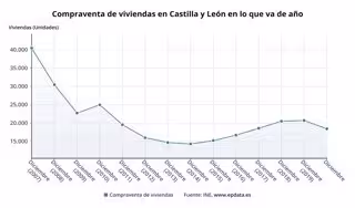 Además, Castilla y León es la quinta región con menor descenso en la compraventa de viviendas que cayó también en todas las comunidades con Islas Baleares (-23,2 por ciento), Comunidad Valenciana (-22,1 por ciento) y Canarias (-21,9 por ciento) con los mayores descensos y Extremadura (-6,5 por ciento), Principado de Asturias (-9,0 por ciento) y Cantabria (-10,7 por ciento) con los menores.