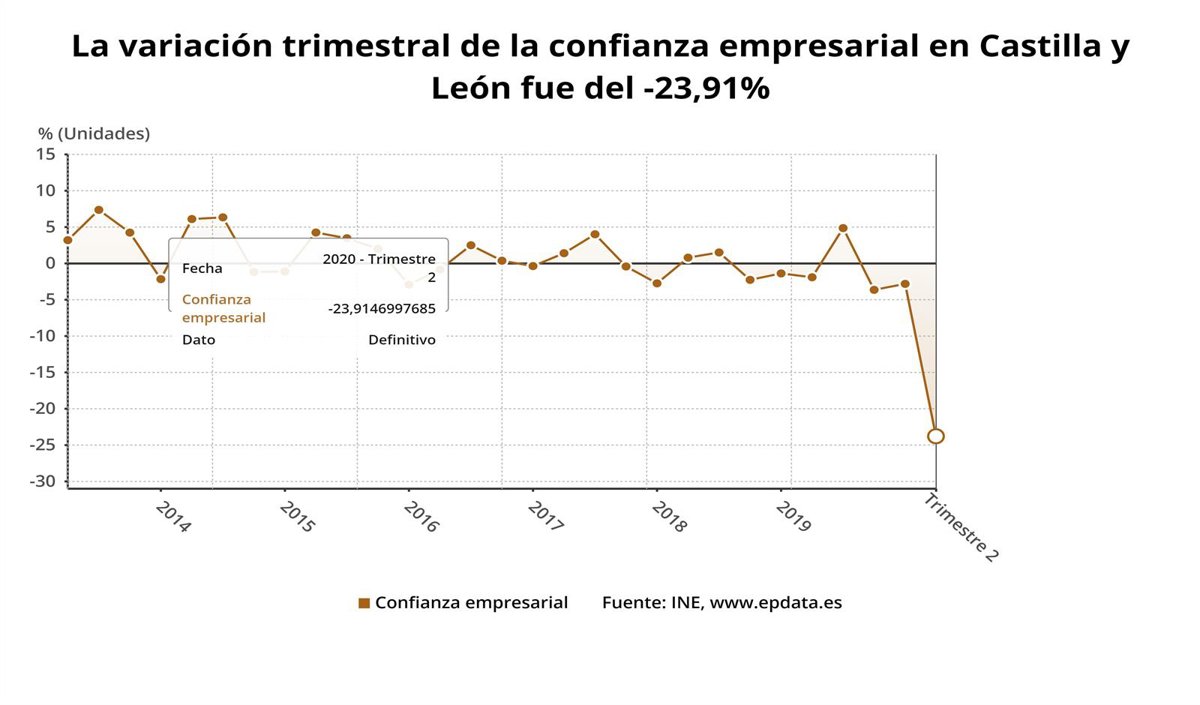 El Indicador de Confianza Empresarial Armonizado (ICEA), cuya publicación corresponde al Instituto Nacional de Estadística (INE), cayó un 23,9 por ciento en el segundo trimestre de este año respecto al trimestre anterior en Castilla y León, frente a un -26,9 por ciento en el resto del país.