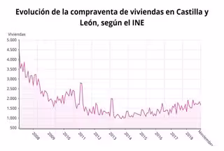Estos datos sitúan a Castilla y León como la quinta comunidad con menor aumento de las tasas anuales del total de fincas transmitidas, que cayeron en tres, y como la cuarta región con peor evolución de la compraventa de viviendas, que subió en doce, también la media del país (2,8 por ciento).
