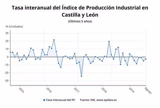 El Índice General de Producción Industrial (IPI) bajó un 2,5 por ciento el pasado mes de agosto en relación al mismo mes de 2018 en Castilla y León, dos puntos más que la media nacional que con un -0,5 por ciento registra una tasa 3,8 puntos inferior a la de julio, según ha informado este martes el Instituto Nacional de Estadística (INE).