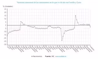 Y respecto a los datos de 2019, el año anterior a la pandemia, se mantiene el descenso de nacimientos que en el acumulado a febrero de 2023 se ha situado en el 14,02 por ciento en Castilla y León, por encima de la media nacional, que cae un 10,75 por ciento.