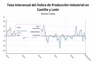 El Índice General de Producción Industrial (IPI) de Castilla y León bajó un 4,9 por ciento el pasado mes de noviembre en relación al mismo mes de 2017, más que la media nacional que registró un descenso del 2,8 por ciento, una tasa en este caso 6,5 puntos inferior a la de octubre, según ha informado este viernes el Instituto Nacional de Estadística (INE).