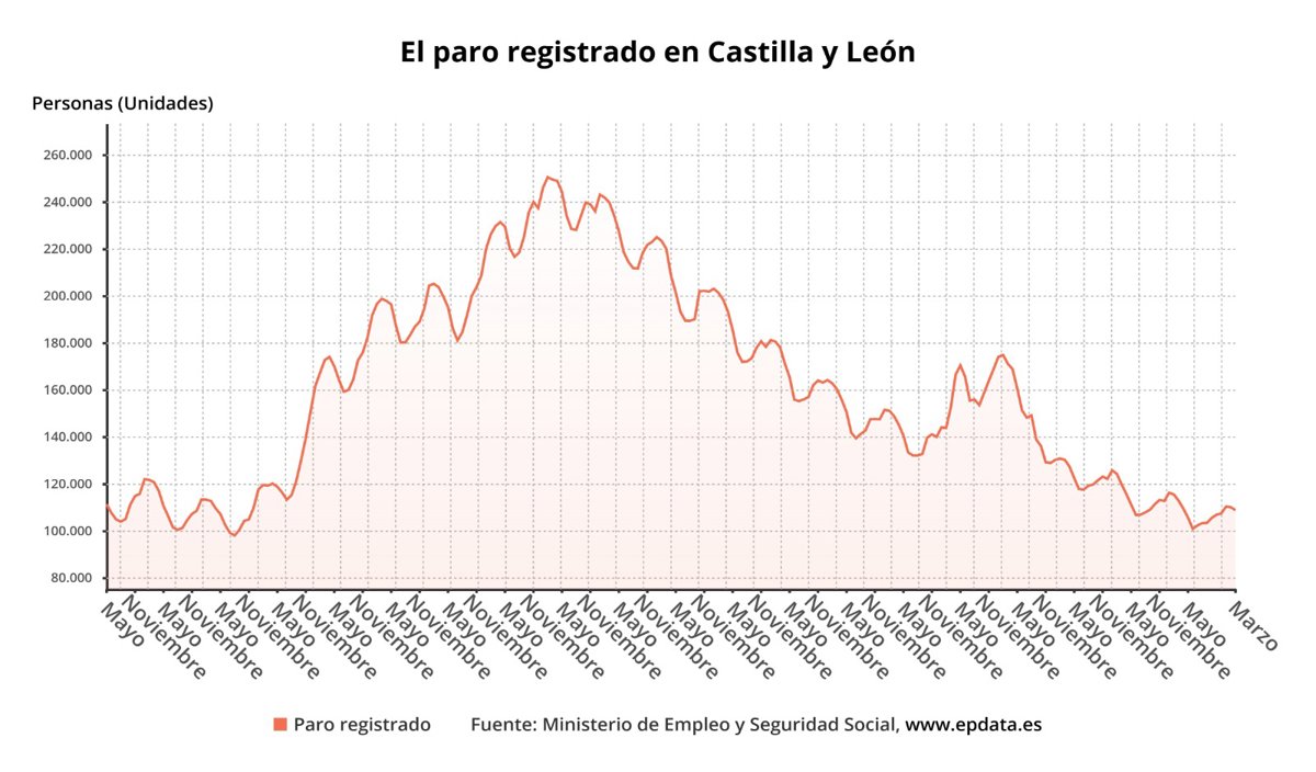 Gráfico con los datos del paro en Castilla y León, donde cae el desempleo en marzo. - EP DATA