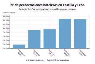 Según los datos de la Encuesta de Ocupación en Establecimientos Hoteleros en septiembre de 2018 hechos públicos por el Instituto Nacional de Estadística (INE), Castilla y León recibió en el citado mes 525.317 viajeros (un 0,27 por ciento menos) de los que 374.139 eran residentes en España y 151.178 extranjeros.