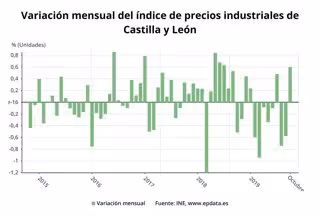 Los precios industriales de Castilla y León subieron un 0,6 por ciento en octubre en relación al mes anterior, una décima más que en España donde aumentaron medio punto, pero retrocedieron un 1,9 por ciento en tasa interanual, de nuevo mejor dato que en España donde el descenso fue del 2,8 por ciento lo que modera en cinco décimas la caída que habían experimentado en septiembre (-3,3 por ciento), según ha informado este lunes el Instituto Nacional de Estadística (INE).