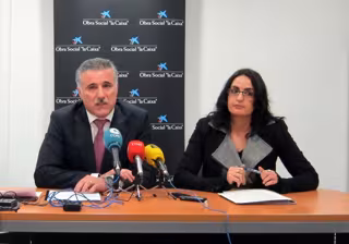 El director de área de negocio de La Caixa en León, Marcos Cereijo y la gestora de Acción Territorial de la Obra Social de la entidad en la provincia, Rosana Cano, han presentado este martes las principales líneas de actuación de la entidad financiera para el presente año, centradas en los ámbitos social, educativo, medioambiental y cultural.