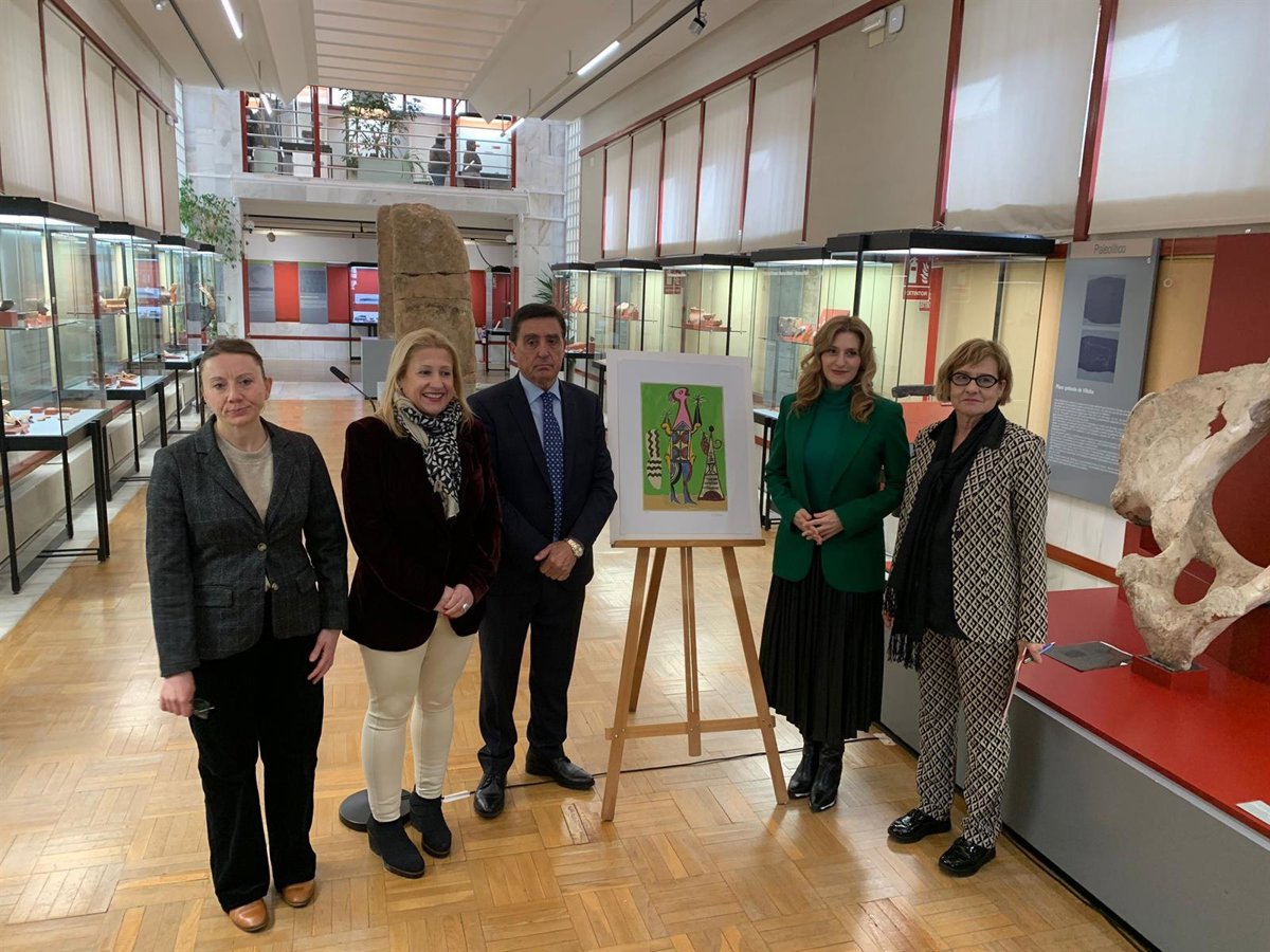 La viceconsejera de Acción Cultural, Mar Sancho, ha recibido este miércoles, por parte del presidente de Caja Rural, Carlos Martínez, la obra 'Surrealista', en un acto en el que ha estado acompañada de la delegada territorial de la Junta en Soria, Yolanda de Gregorio; la jefa territorial de Cultura, Marta Fernández, y la directora del Museo Numantino, Marian Arlegui.