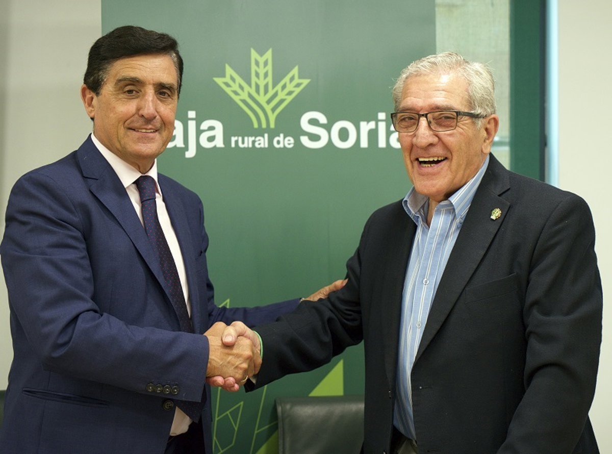 Este lunes han firmado el convenio de colaboración el presidente de Caja Rural de Soria, Carlos Martínez Izquierdo, y el presidente de la Junta Provincial de la Asociación Española Contra el Cáncer, Fernando Ligero.