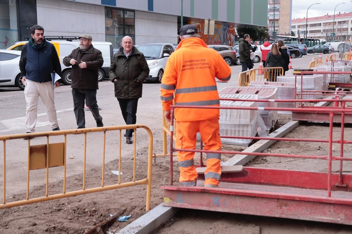 El alcalde de Valladolid, Jesús Julio Carnero, y varios concejales visitan las obras en la calle Arca Real, en el barrio de Las Delicias. - AYUNTAMIENTO DE VALLADOLID