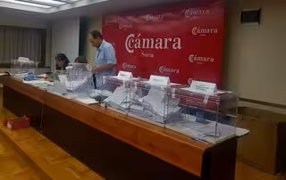 En las votaciones a las ocho categorías del Grupo A y Grupo C del Pleno a la Cámara de Comercio, Industria y Servicios de Soria que tuvieron lugar durante la jornada del martes en la sede de la institución cameral, se registraron 2.317 votos emitidos --2.309 válidos, ocho nulos, ocho en blanco-- que han elegido por sufragio libre y universal a once vocales entre los 7.757 electores del Censo Electoral (empresas y autónomos de Soria) entre los 25 que optaban a la elección.