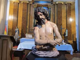 La Capilla del Palacio Real de Valladolid, sede de la Cuarta Subinspección General del Ejército de la Comandancia Militar de dicha provincia y de Palencia, ha incorporado hoy a su imaginería una talla del 'Ecce Homo', de autor desconocido y restaurada en el último año tras haber sido hallada, durante un proceso de inventariado, en un viejo polvorín ubicado en la provincia de Burgos.